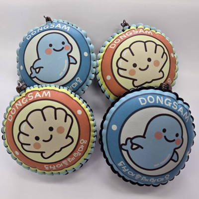 해녀들이 물질할 때 입는 낡은 해녀복으로 동삼어촌계에 서식하는 상괭이와 조개가면을 이미지화한 열쇠고리 만드는 체험입니다.